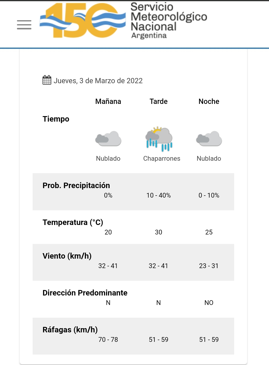 El pronóstico del tiempo realizado por el Servicio Meteorológico Nacional para la provincia anticipa temperaturas por encima de los 30° pero habría probabilidad de lluvia por la tarde.
