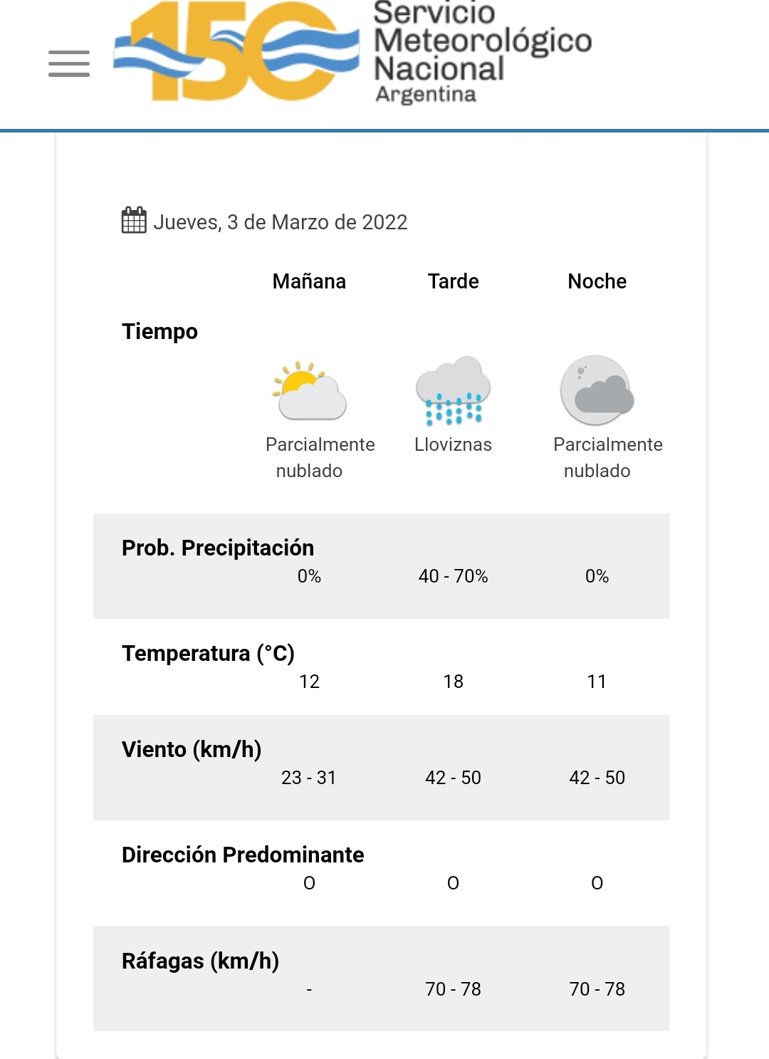 Pronóstico para Comodoro