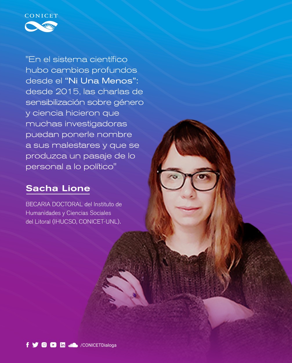 En este sentido, Lione, que trabaja en el Instituto de Humanidades y Ciencias Sociales del Litoral (IHUCSO, CONICET-UNL) orientando sus estudios en cómo se introduce el género en la trayectoria de investigadoras científicas, señala que “si bien los feminismos tienen una larga historia en nuestro país, en la actualidad nos encontramos frente un nuevo clima de época caracterizado por la masividad y la fuerza del movimiento en el espacio público”.