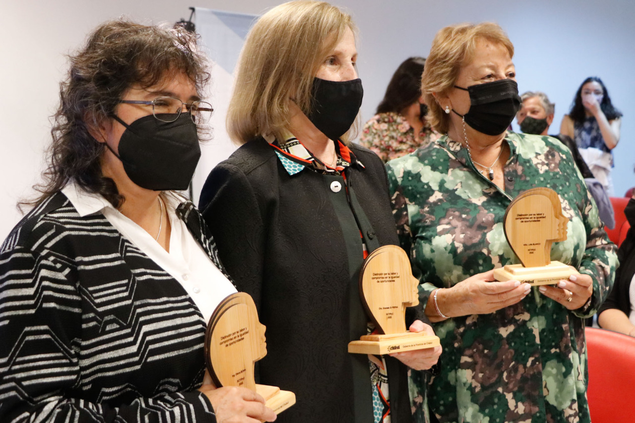 La primera distinción fue entregada a la Magister Lidia Blanco, rectora de la Universidad Nacional Patagónica San Juan Bosco, luego siguió el turno de la Ing. Diana Bohn, Decana de la Facultad Regional Chubut de la Universidad Tecnológica Nacional y de la Rectora de la Universidad del Chubut, Dra. Graciela Di Perna. También fueron destacadas la Dra. Tamara Rubilar, científica y emprendedora, cofundadora de la empresa EriSea; la Lic. Lorena Vanesa Álvarez Manríquez, quién recibió este año un premio en el marco de del Programa Nacional para la Igualdad de Géneros del Ministerio de Ciencia, Tecnología e Innovación Productiva de la Nación.