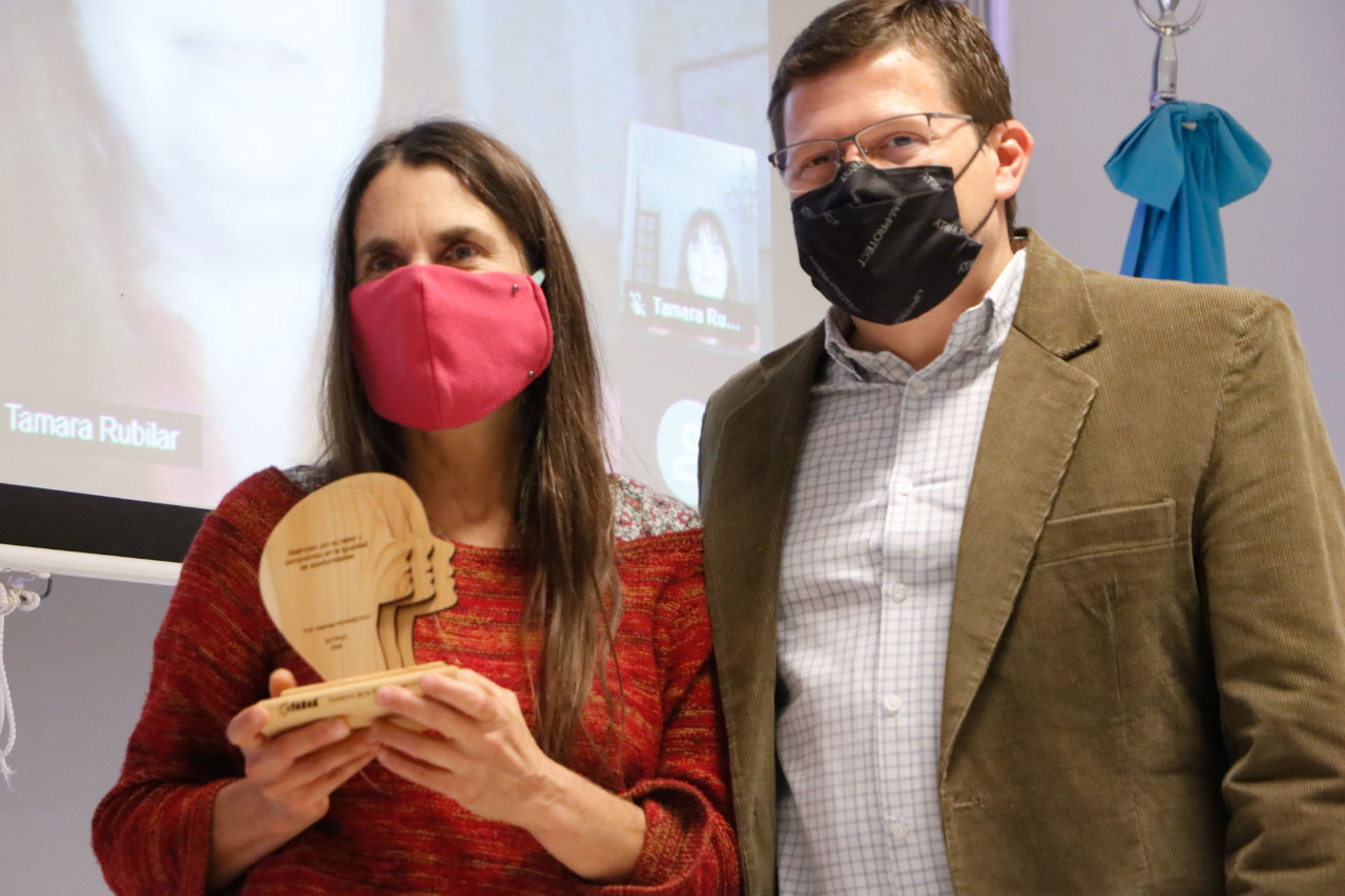 El momento más emotivo de la jornada fue sin duda el homenaje y reconocimiento a la Lic. María Verónica Vila, quien el año pasado falleció, pero su trabajo generó y acompañó la transformación de muchas personas desde su humildad y humanidad y generó un gran aporte a la ciencia y al rol de la mujer en la investigación desde una perspectiva de género. Su premio fue recibido por sus padres.
