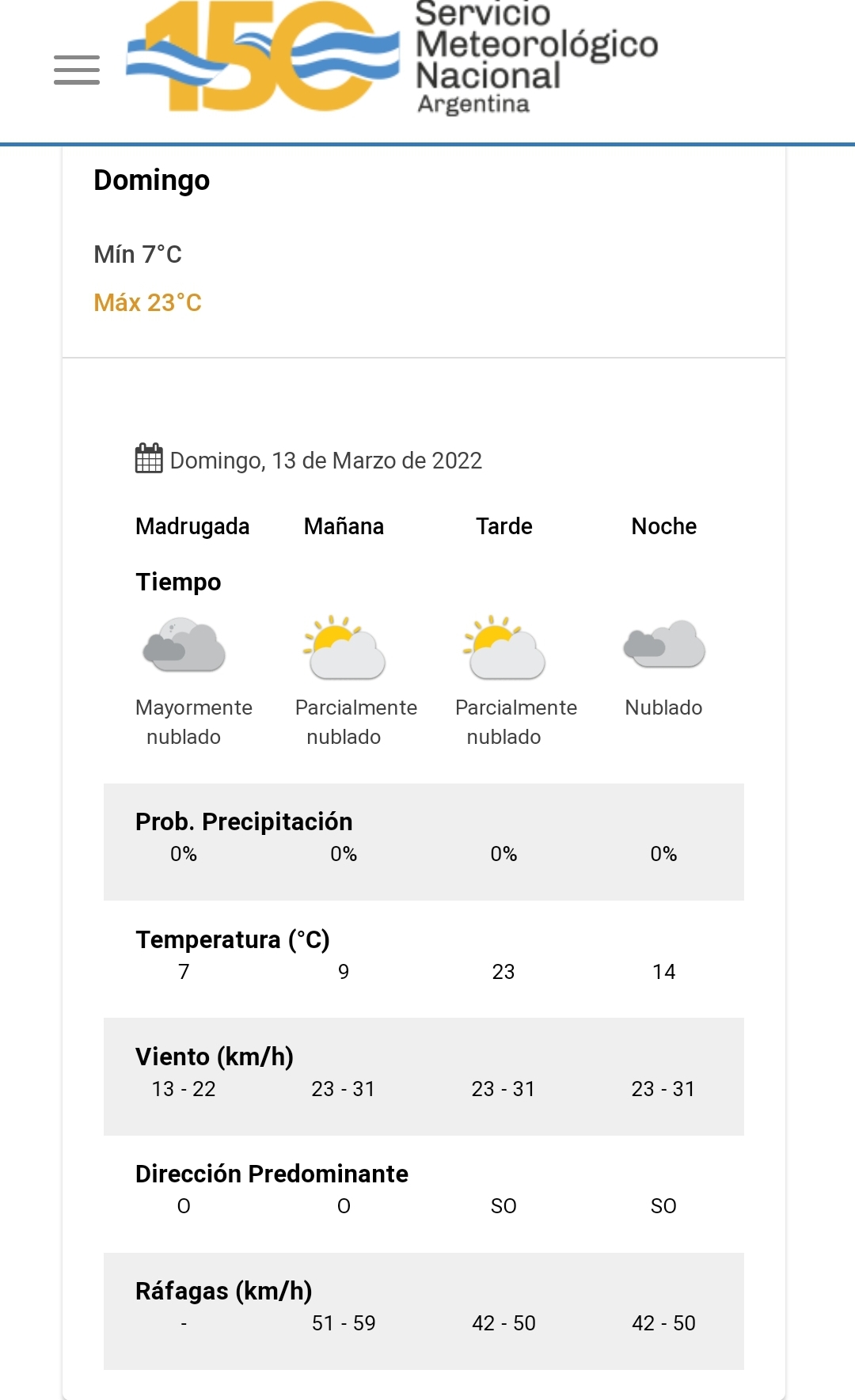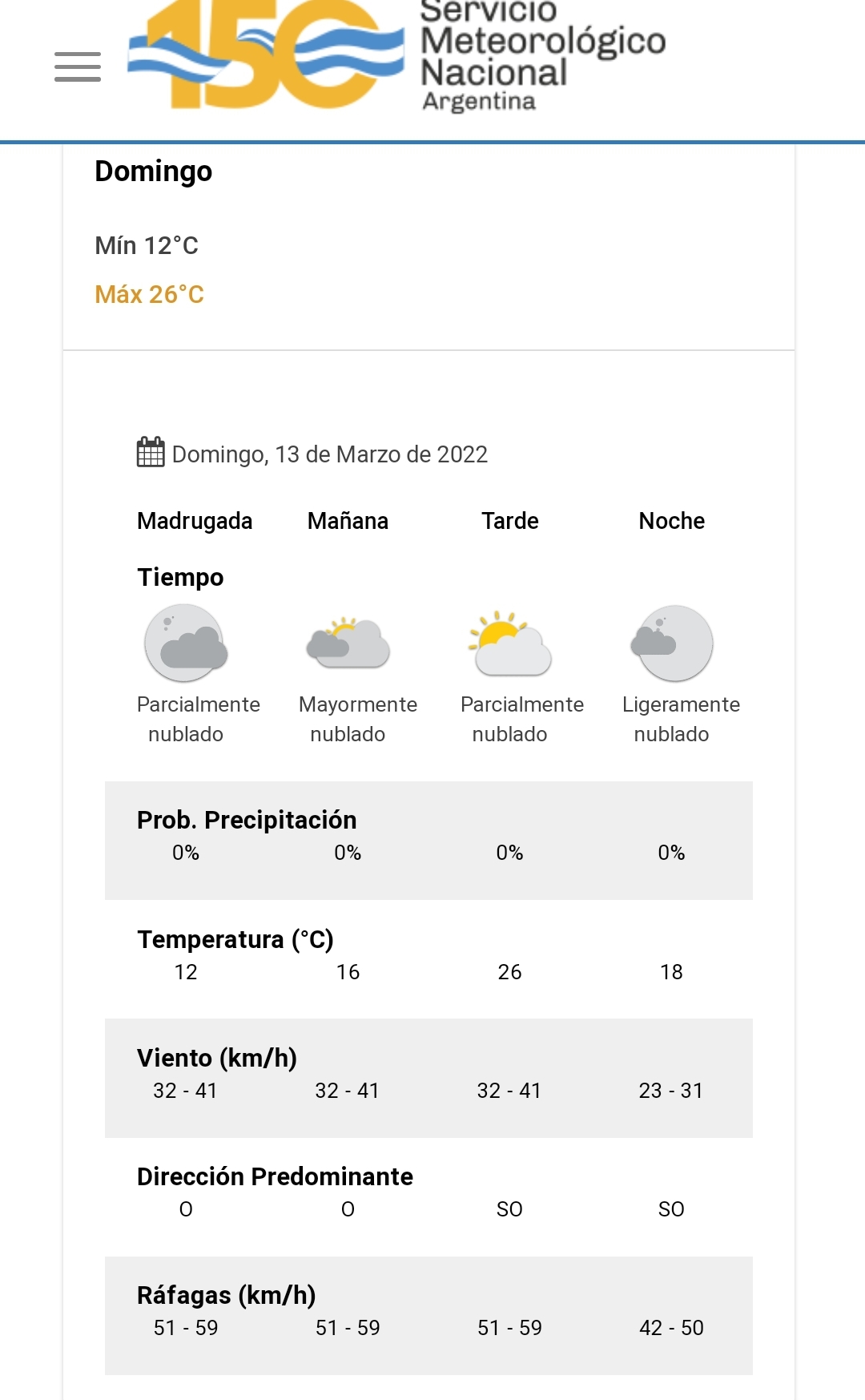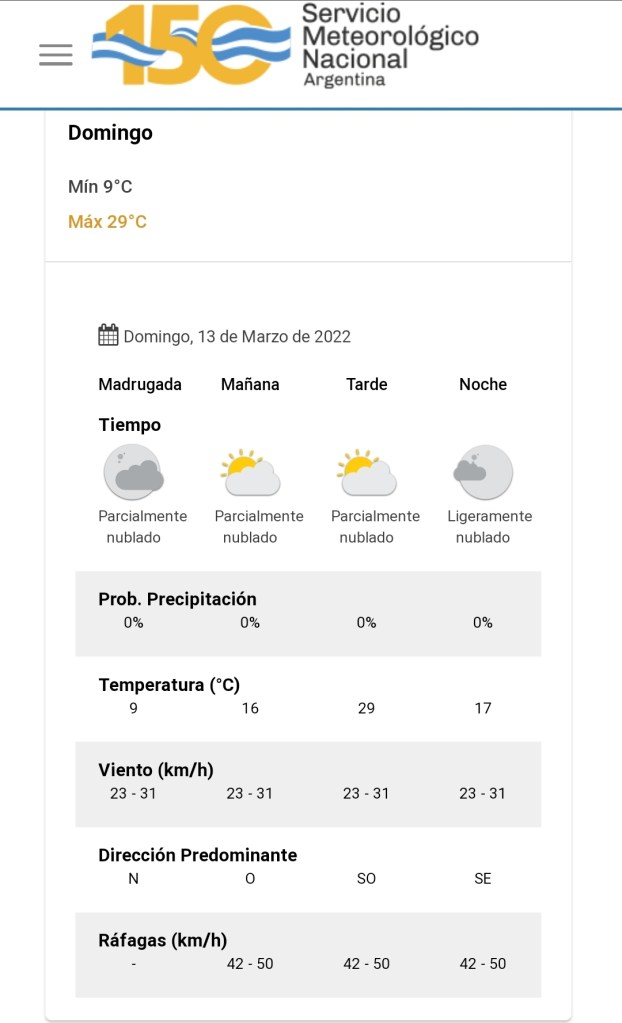 El pronóstico del tiempo elaborado por el Servicio Meteorológico Nacional, anticipa día caluroso, con temperaturas agradables, pero nublado y con viento.