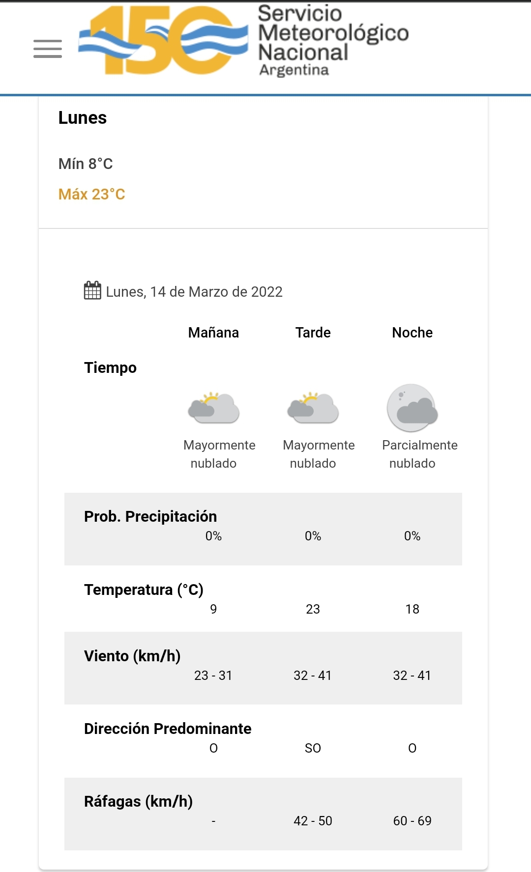 Conocé cuál es el pronóstico del tiempo para la provincia elaborado por el Servicio Meteorológico Nacional. Entrá y mirá los gráficos de las temperaturas.