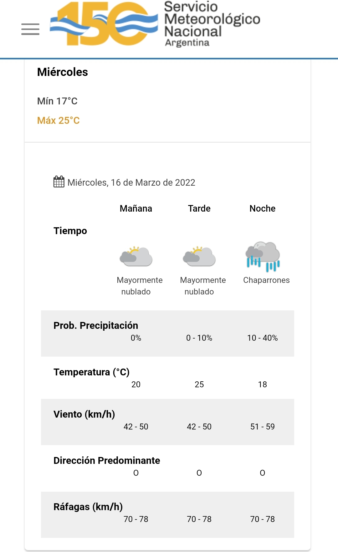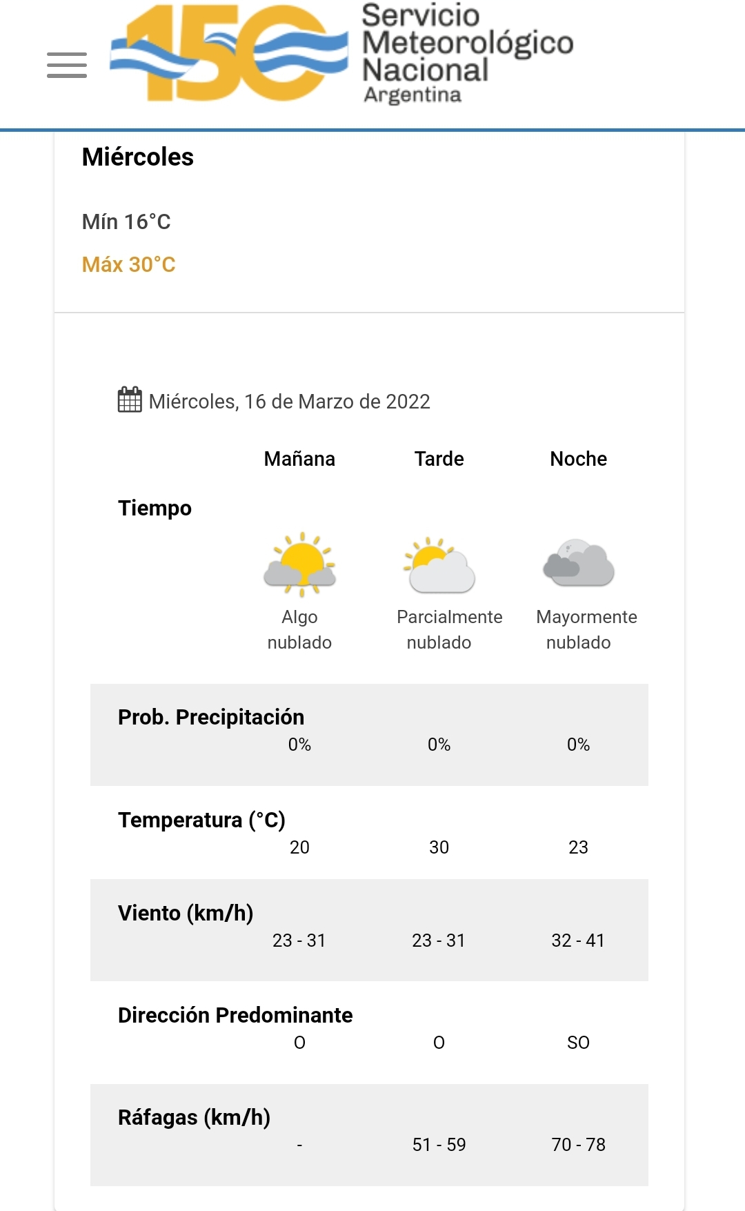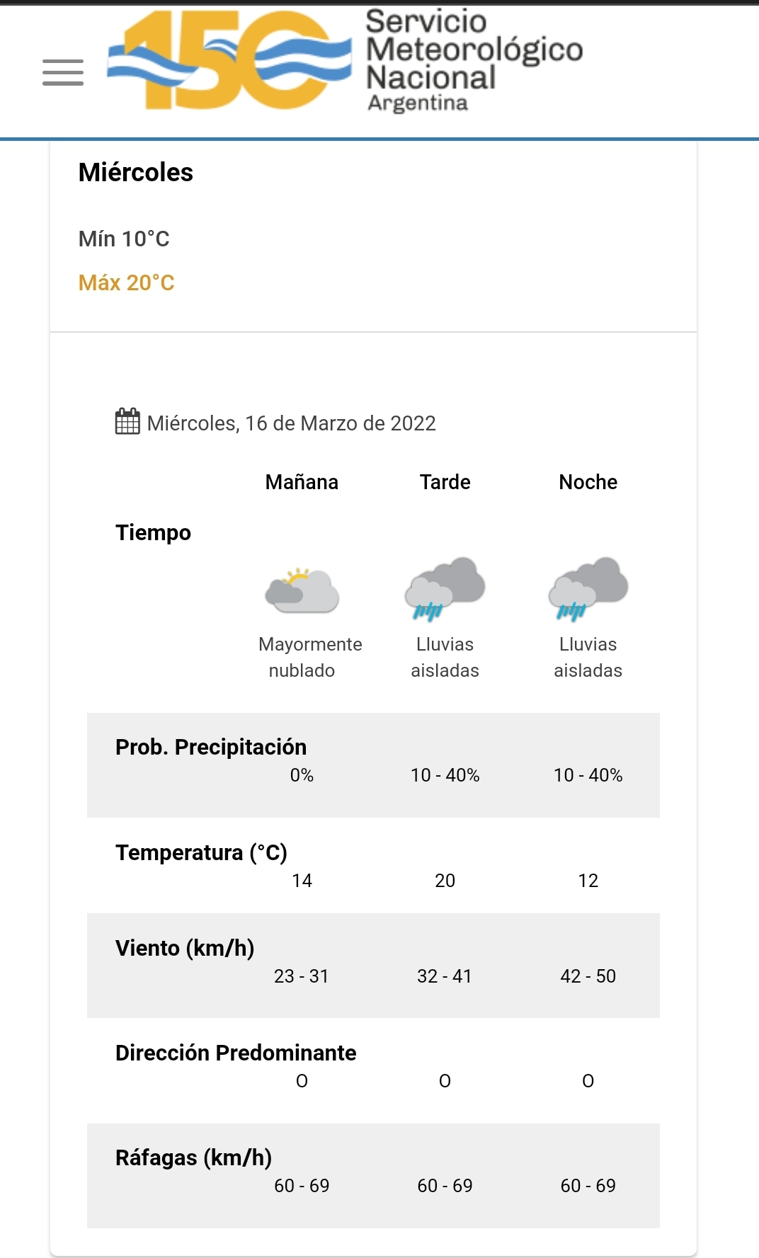 Mirá el pronóstico del tiempo para la provincia, este miércoles, elaborado por el Servicio Meteorológico Nacional.