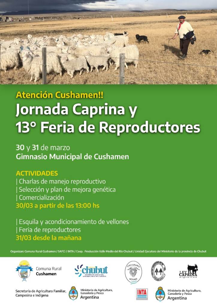 La misma contará con el auspicio del Estado Provincial; a través de la Subsecretaría de Ganadería como autoridad de aplicación de Ley Caprina; del programa PROLANA; MOHAIR; INTA, y la Comuna Rural de Cushamen.