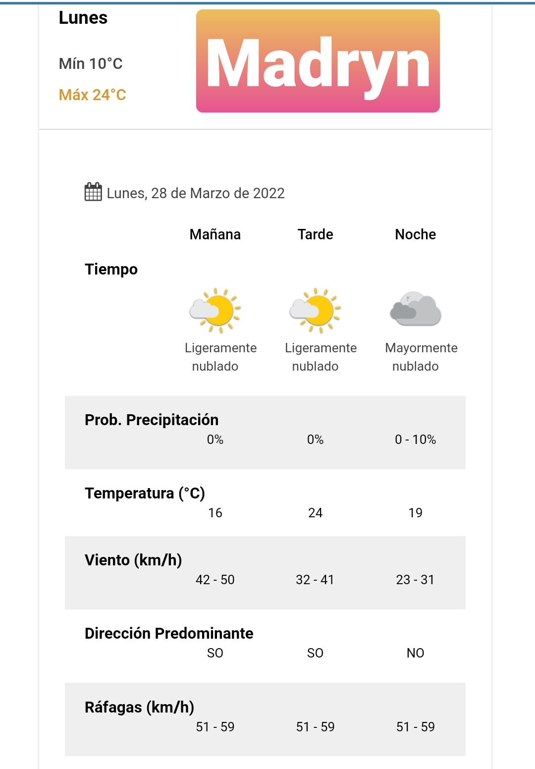 Pronóstico para Puerto Madryn