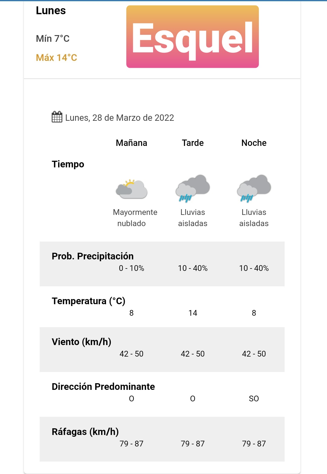 Pronóstico para Esquel