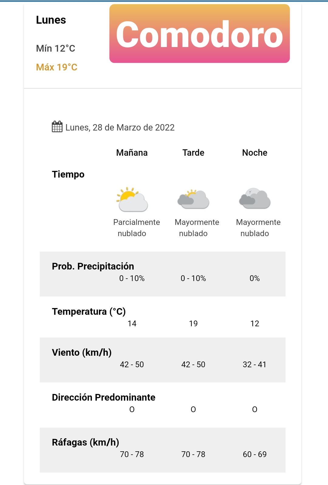 Pronóstico para Comodoro