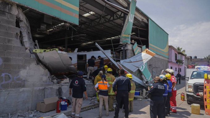 La aeronave cayó por causas que se desconocen sobre el techo del supermercado Aurrerá, ubicada en la periferia de la ciudad de Cuernavaca, capital de Morelos. Se trata de un lugar que se encuentra a unos 70 kilómetros al sur de la capital.