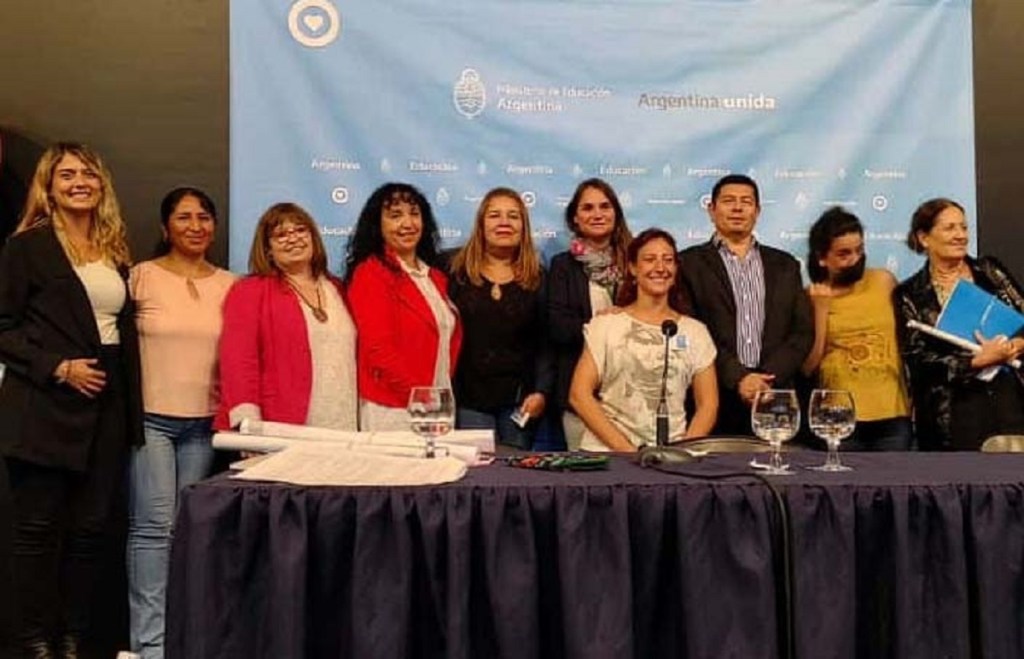 El encuentro se llevó adelante el martes 29 de marzo en la sede del Ministerio y representando a la provincia estuvieron presentes el subsecretario de Educación, Miguel Casanova, las directoras generales de Educación Inicial, Jimena Alemano, y de Educación Privada, Diana Narez; la coordinadora de Educación Intercultural y Bilingüe (EIB), Magalí Domínguez; y la referente de Plan de Lecturas, Verónica Raggio. También fueron acompañados por Machada Fereal, integrante del equipo técnico de la Dirección de Educación Inicial; las supervisoras técnicas escolares de la Regiones V y VI, Maria Elena Soler y Claudia Pasos; como así también la directora de la ENI 459, Paola Molina, y la docente de la UEM Nº 95 de Telsen, Liliana Mendoza.