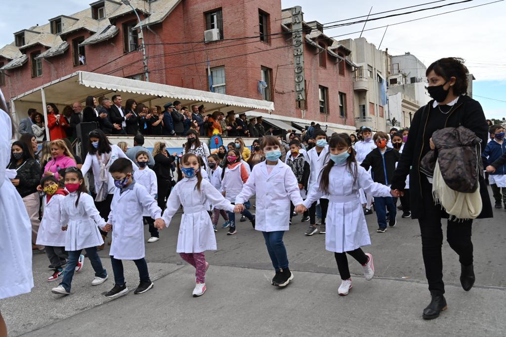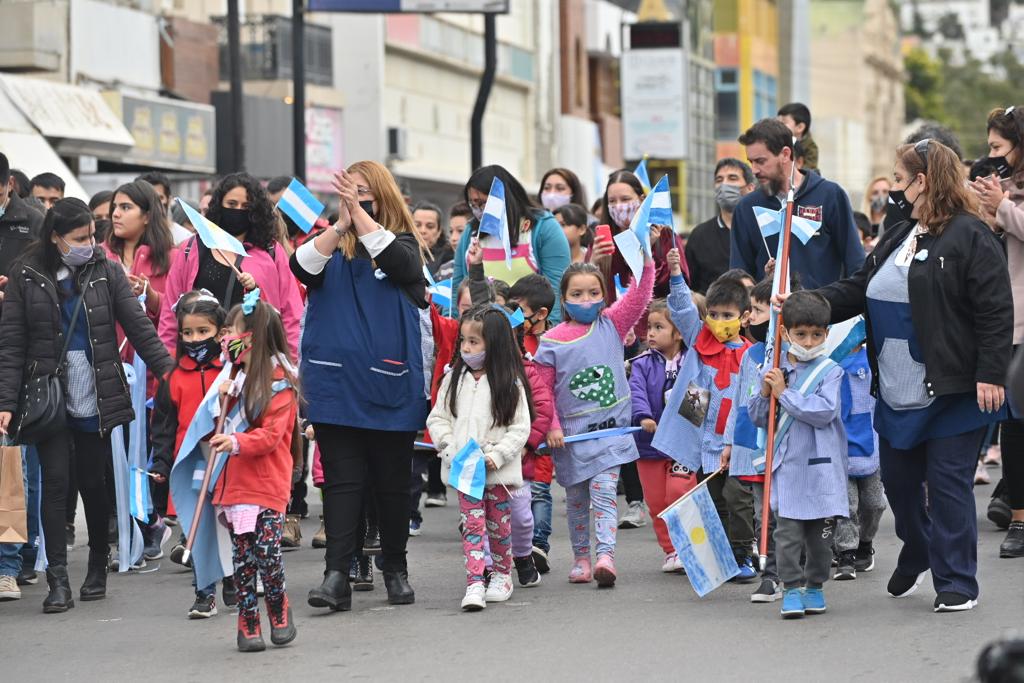 MIRÁ LAS FOTOS | Del emotivo desfile, con gran participación popular, estuvieron presentes alumnas y alumnos de las escuelas de nivel inicial, primario y secundario, Fuerzas Armadas y de seguridad, ex combatientes, Cruz Roja, Bomberos Voluntarios y agrupaciones gauchas de la ciudad.