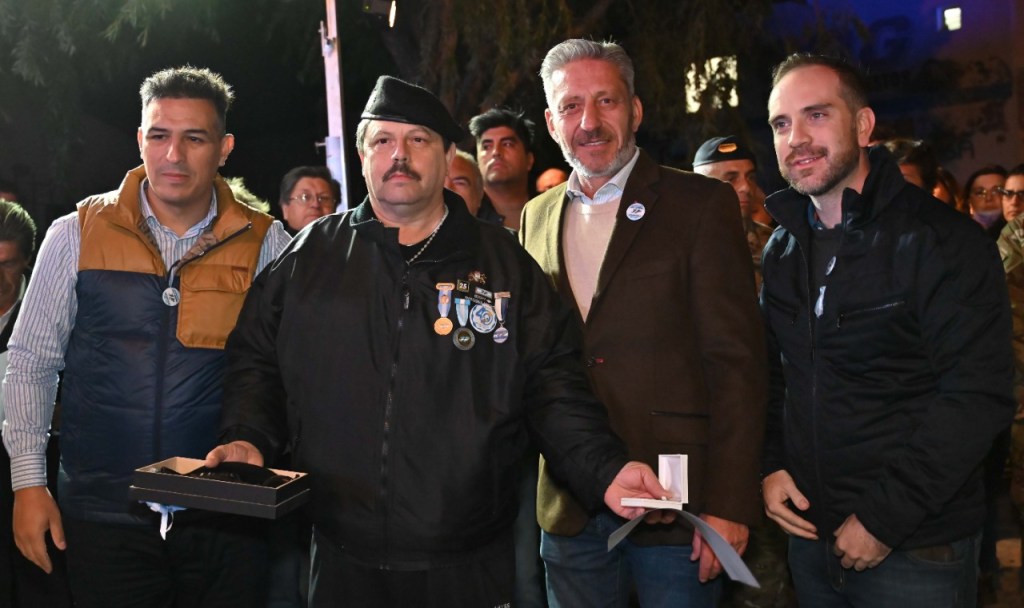 «Hoy, en esta Vigilia, entregamos una medalla de honor a un ex combatiente que nos dejó en diciembre y seguimos con en esa ilusión intacta que tenemos todos, de que la bandera Argentina este flameando en las Malvinas», señaló el mandatario provincial.