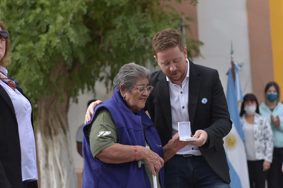 Por último, se homenajeó a Juan Ernesto Velásquez, ex combatiente de la ciudad de Dolavon, descubriendo un monumento en la casa de sus familiares.