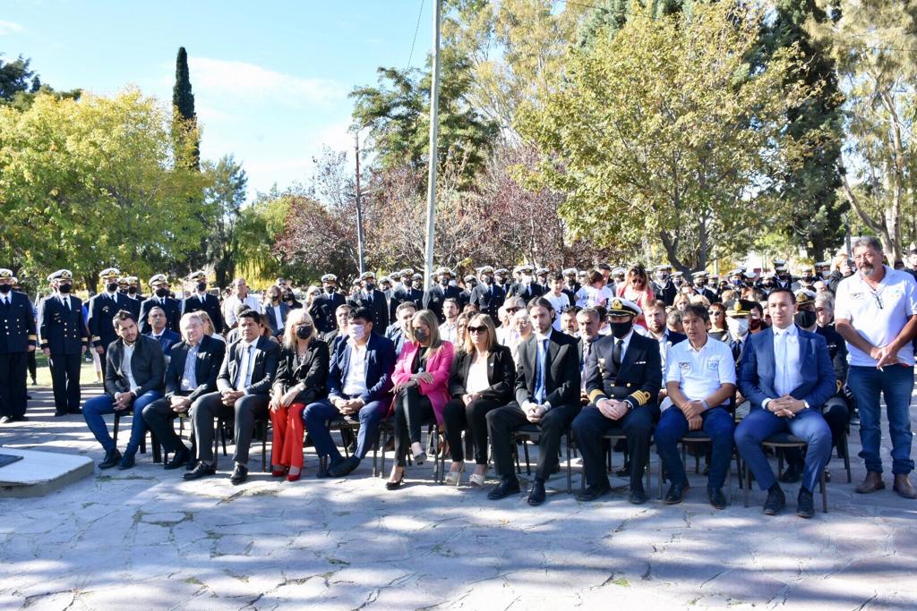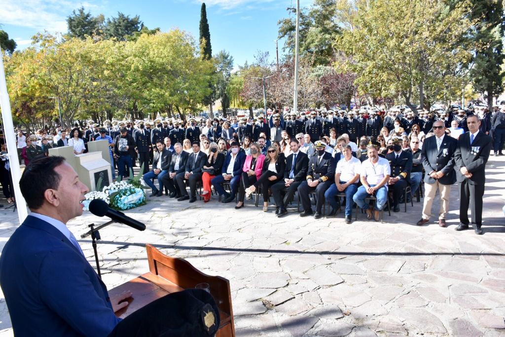 El primer mandatario de la ciudad, minutos después de las 11, encabezó el acto oficial celebrado en el Monumento a los Caídos de la Plaza Centenario de Trelew. Participó del izamiento del pabellón nacional, entregó una de las ofrendas florales, y compartió cada uno de los emotivos momentos que se vivieron con cada reconocimiento.