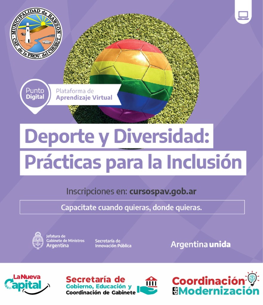 La Coordinación de Modernización de la Capital provincial invita a la comunidad al nuevo curso de “Deporte y diversidad: prácticas para la inclusión”. El objetivo es conocer sobre la funcionalidad del deporte para fomentar la inclusión de diferentes colectivos vulnerados, como también el impacto positivo en la relación con sus pares y la sociedad. Es organizado por la Dirección de Mujeres, Géneros, Diversidad y TIC de la Nación.