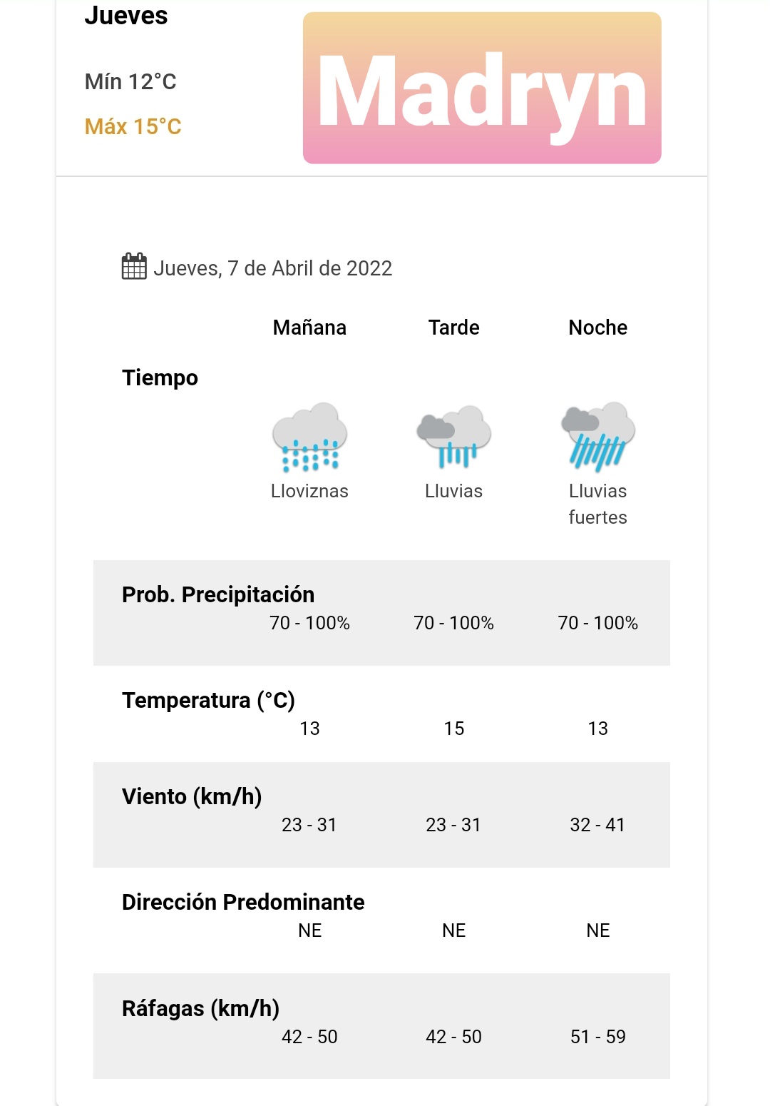 Pronóstico para Madryn