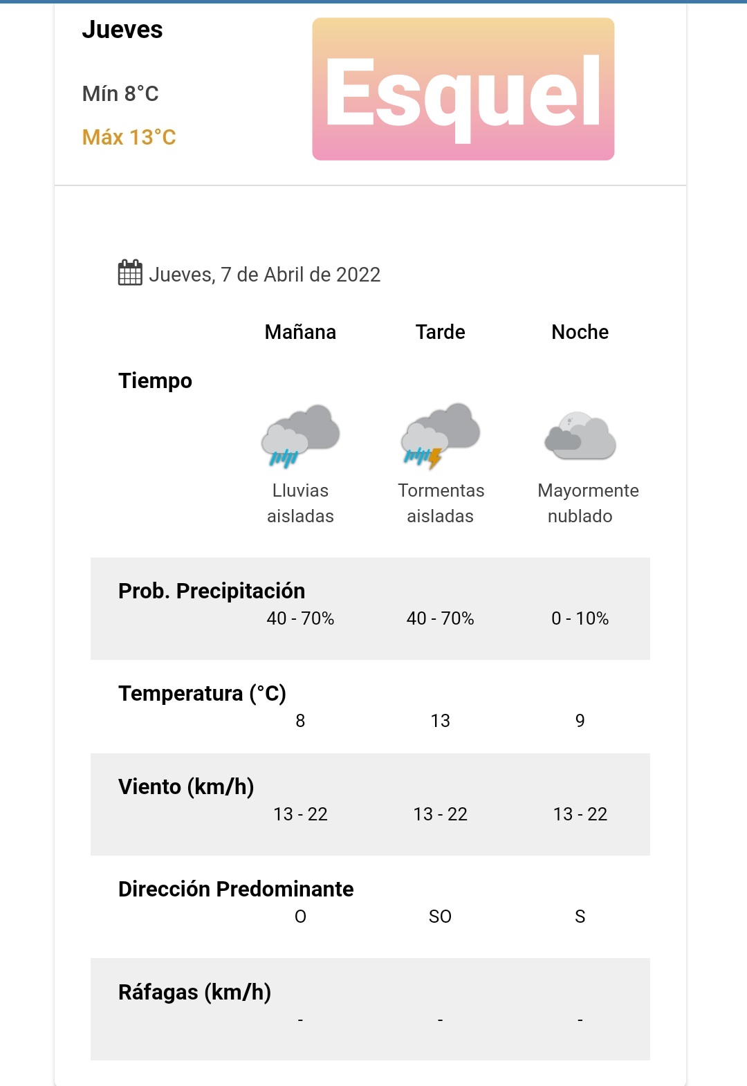 Pronóstico para Esquel