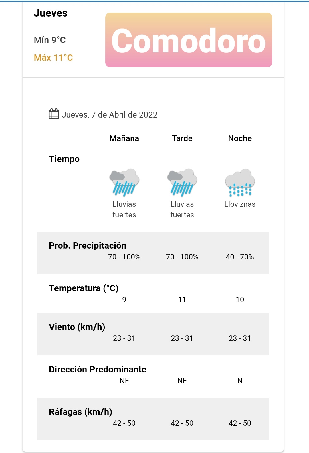 Pronóstico para Comodoro