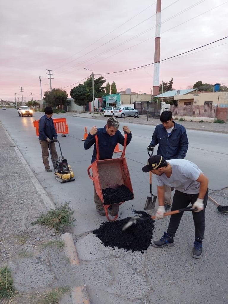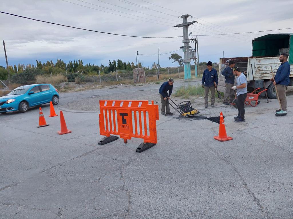 Por otra parte, distintas cuadrillas están abocadas a realizar tareas de conservación vial mediante el tapado de baches con Rapibach, así como distintos trabajos de bacheo con reparación de calzada.