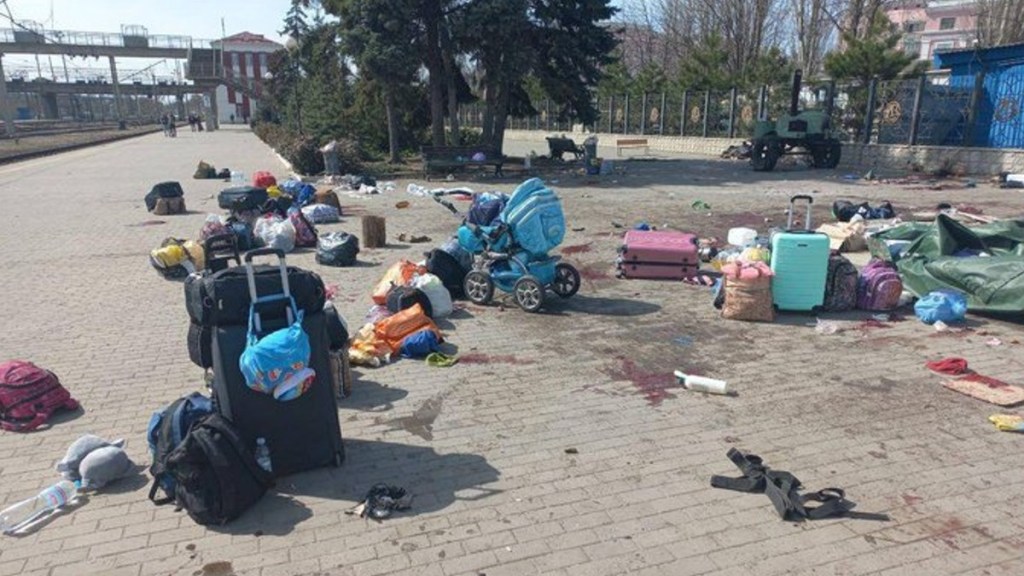 Frente a la estación de Kramatorsk se veían varios automóviles carbonizados y los restos de un misil. El lugar estaba sembrado de maletas abandonadas, vidrios rotos y escombros. El interior de la estación estaba cubierto de sangre, a menudo pisoteada y extendida hacia la calle, debido al movimiento de los cuerpos, reportó la agencia francesa.