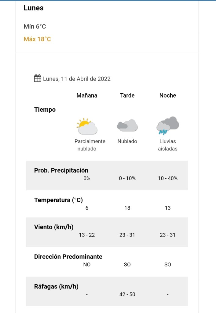 Conocé cómo estará este lunes según el pronóstico elaborado para la provincia del Chubut por el Servicio Meteorológico Naciona.