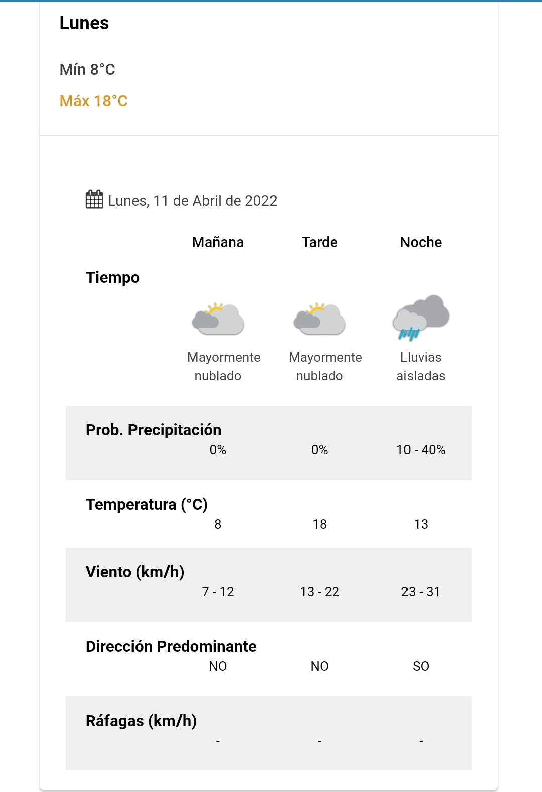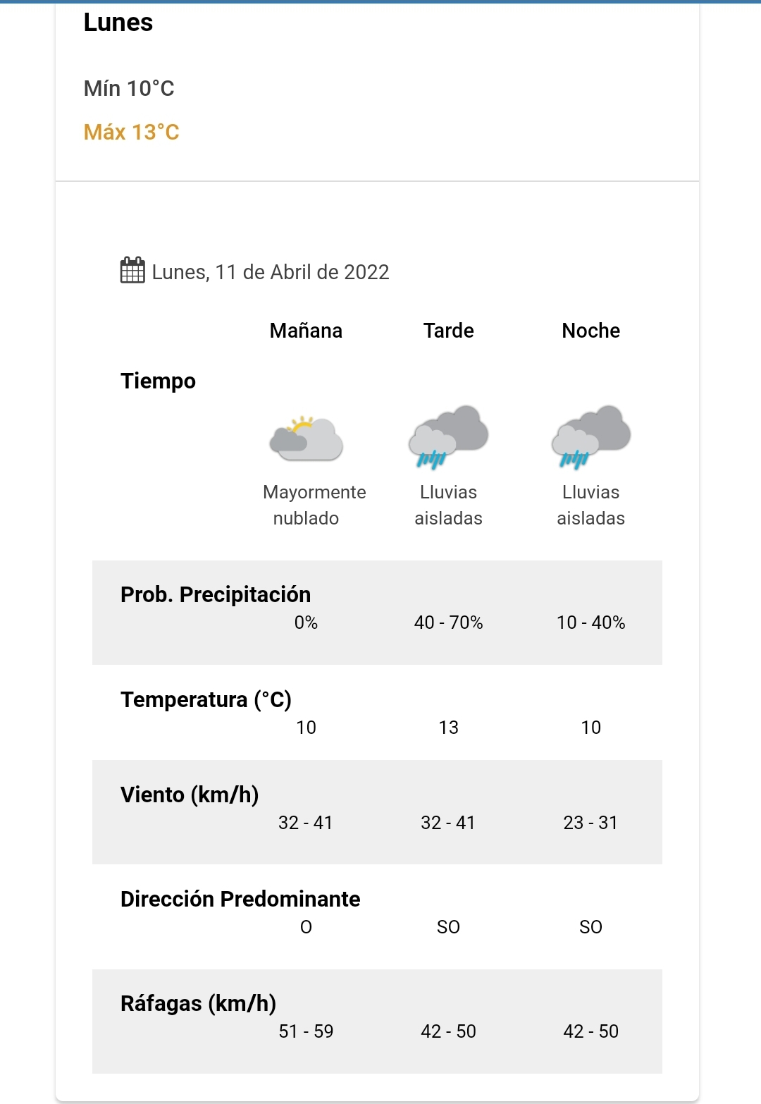 Pronóstico para Comodoro