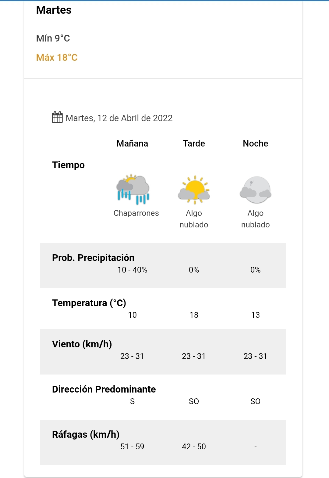 Pronóstico para Comodoro