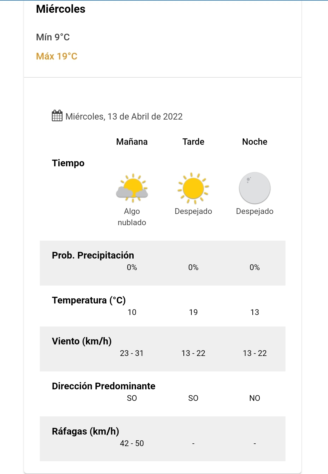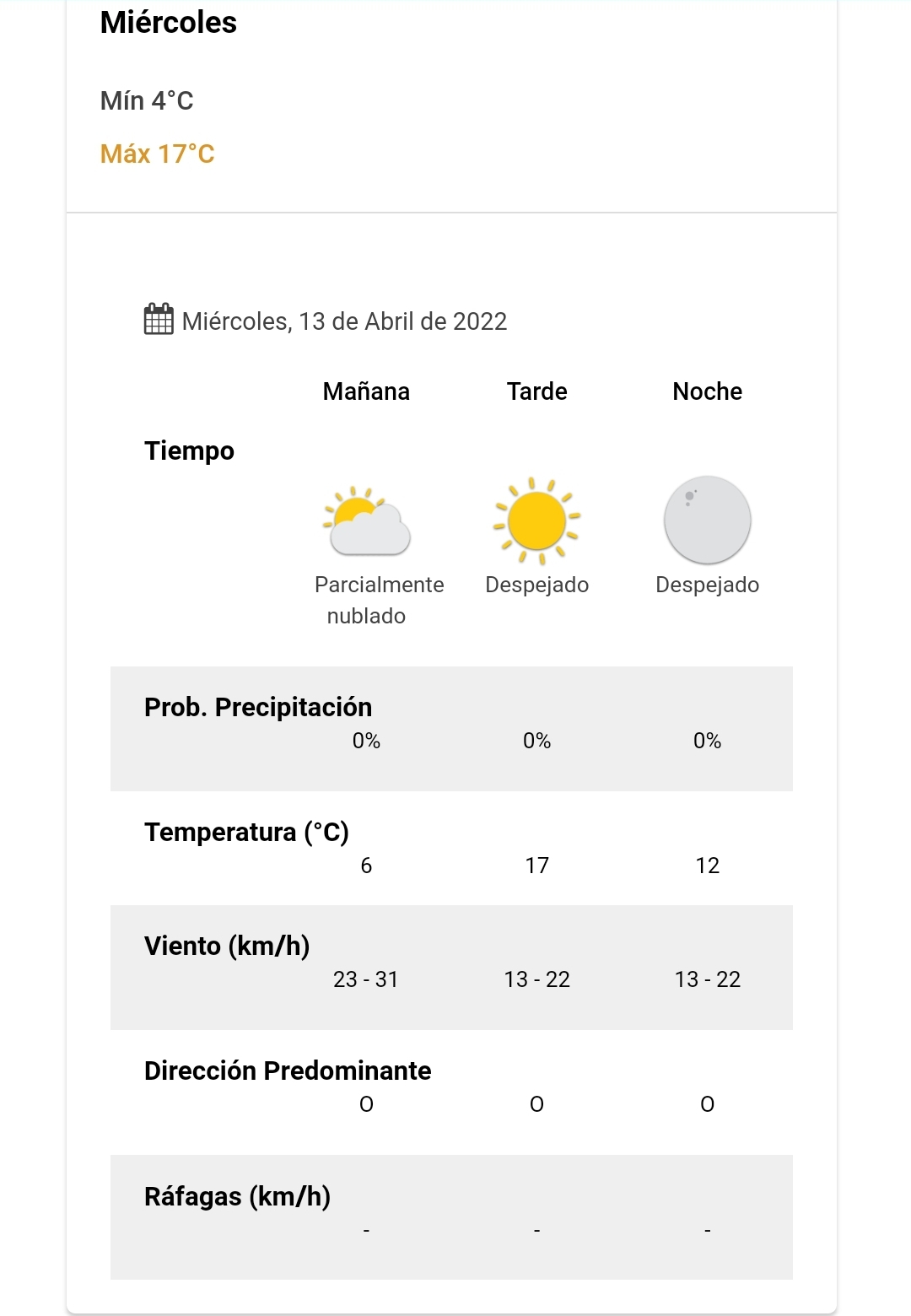 Entrá en la nota para conocer los datos del pronóstico elaborado por el Servicio Meteorológico Nacional para este miércoles en la provincia de Chubut.