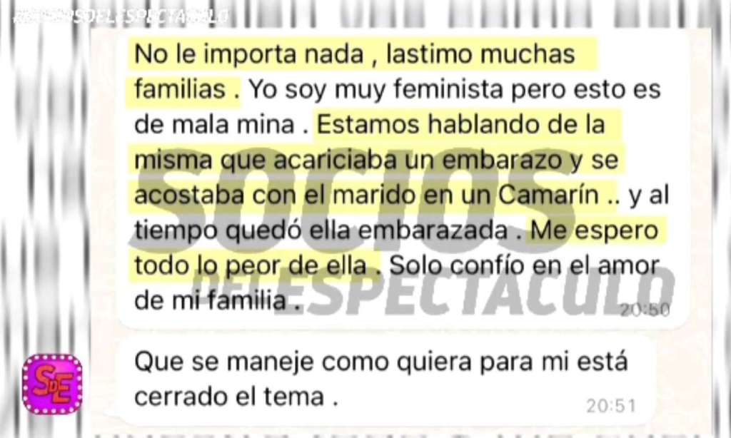 Luego, añadió: “Fui a buscarla en su celular y buscando y buscando, empecé a ver pantallazos de un chat con una mujer muy famosa que ya saben…”.