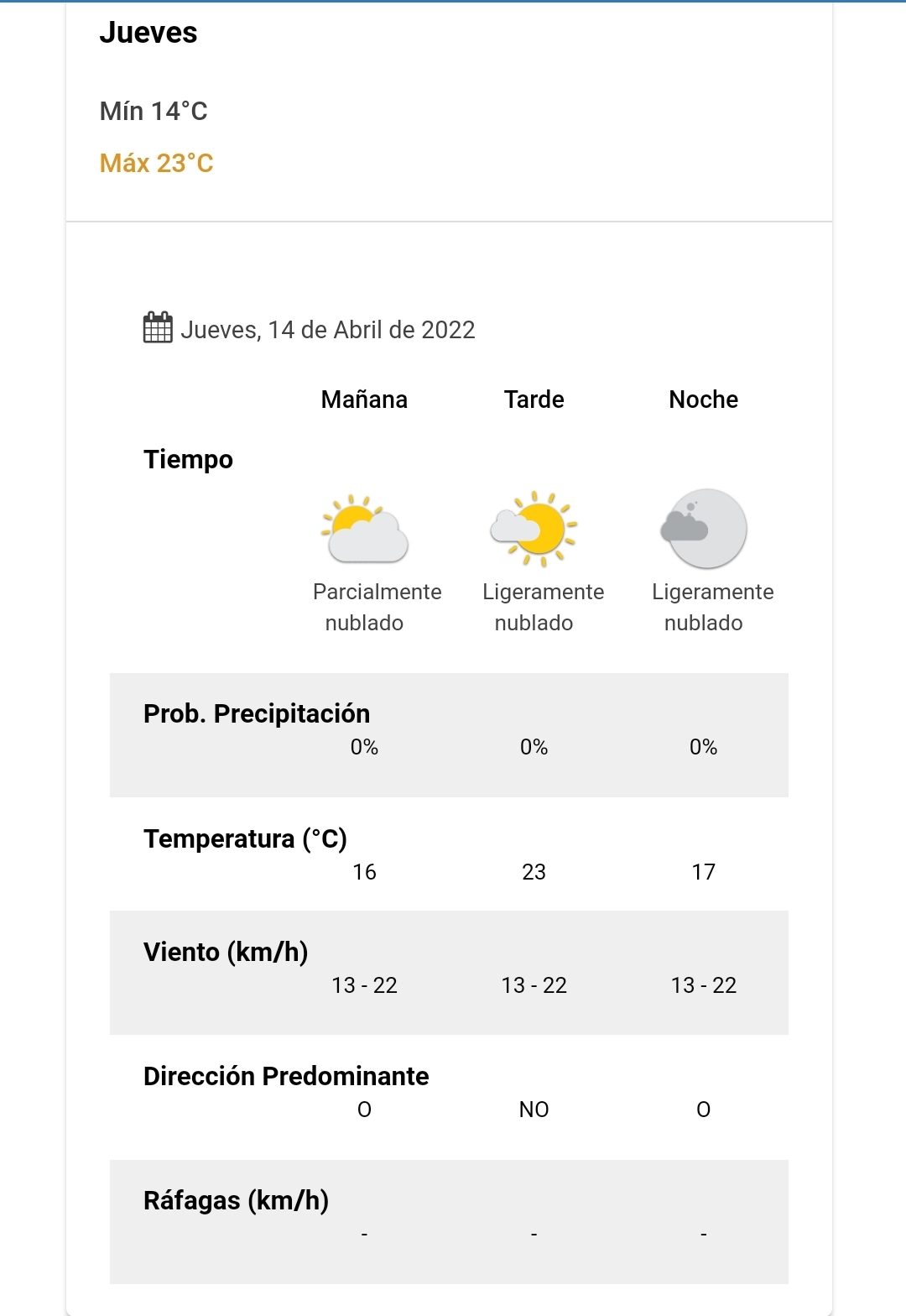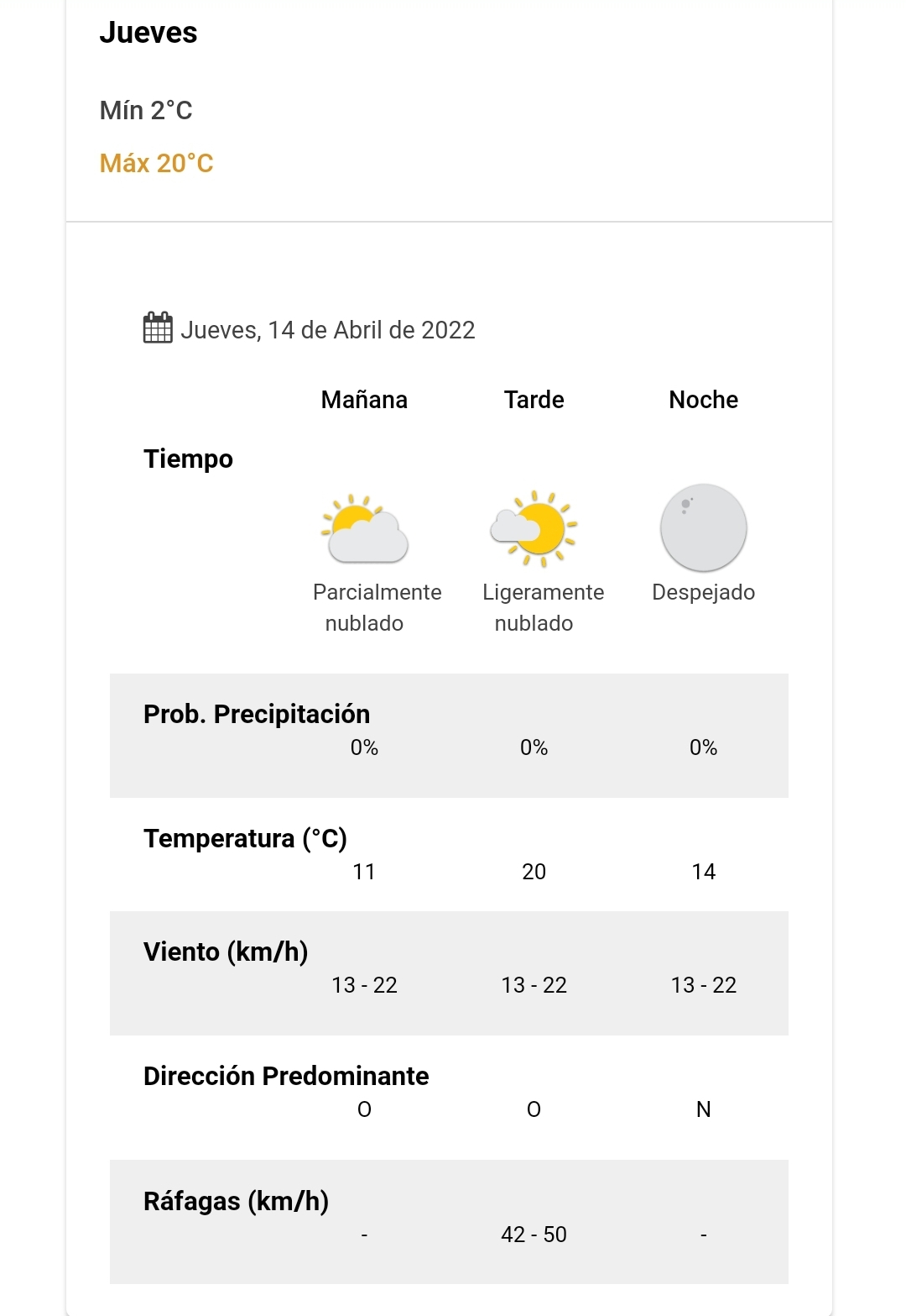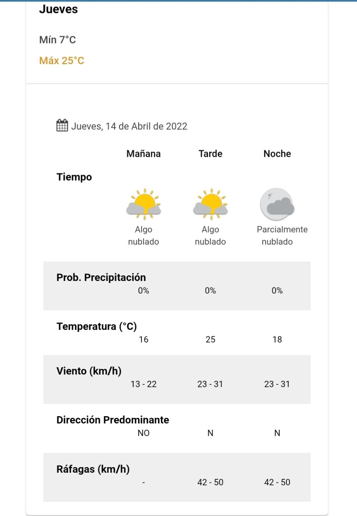El pronóstico del tiempo elaborado por el Servicio Meteorológico Nacional para este jueves en la provincia.