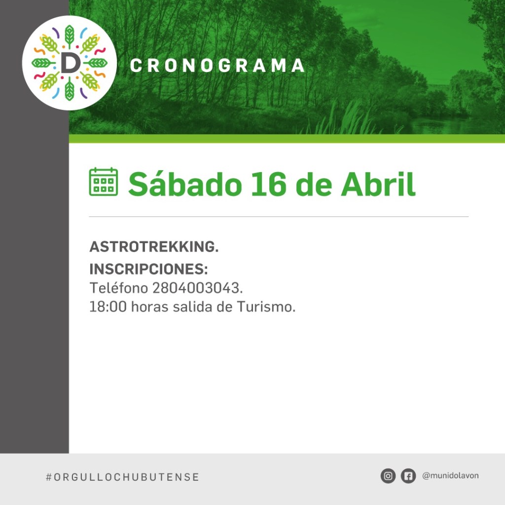 El sábado 16 de abril, desde las 18 horas, se realizará la propuesta libre y gratuita que combina caminatas por senderos y la observación del cielo a través de telescopios. Para inscribirse o recibir más información comunicarse al teléfono 2804-003043.