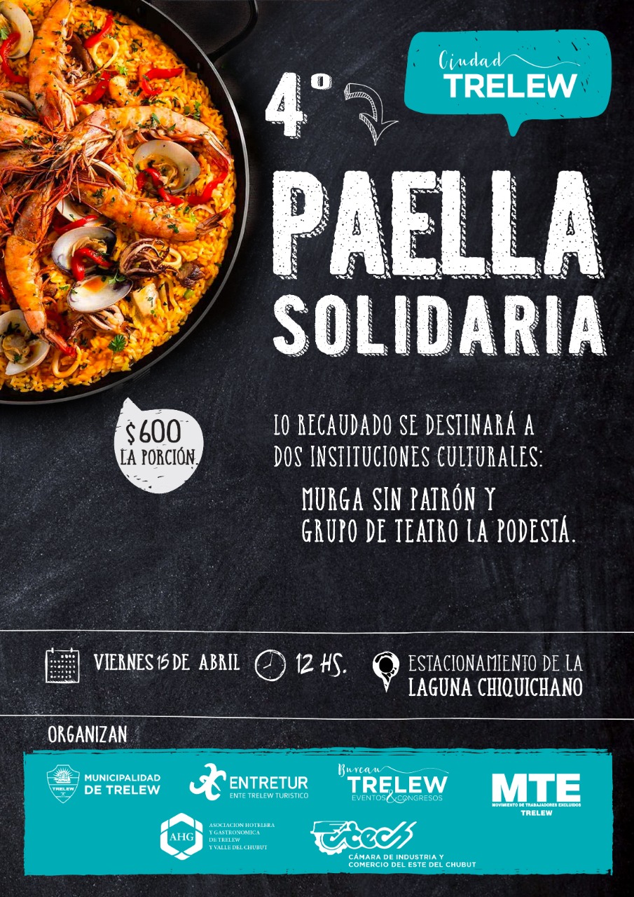 Se desarrollará este viernes, desde las 12 en la Reserva Natural Municipal Laguna Cacique Chiquichano, la cuarta edición de la Paella Solidaria, organizada por la Municipalidad de Trelew junto al sector privado.