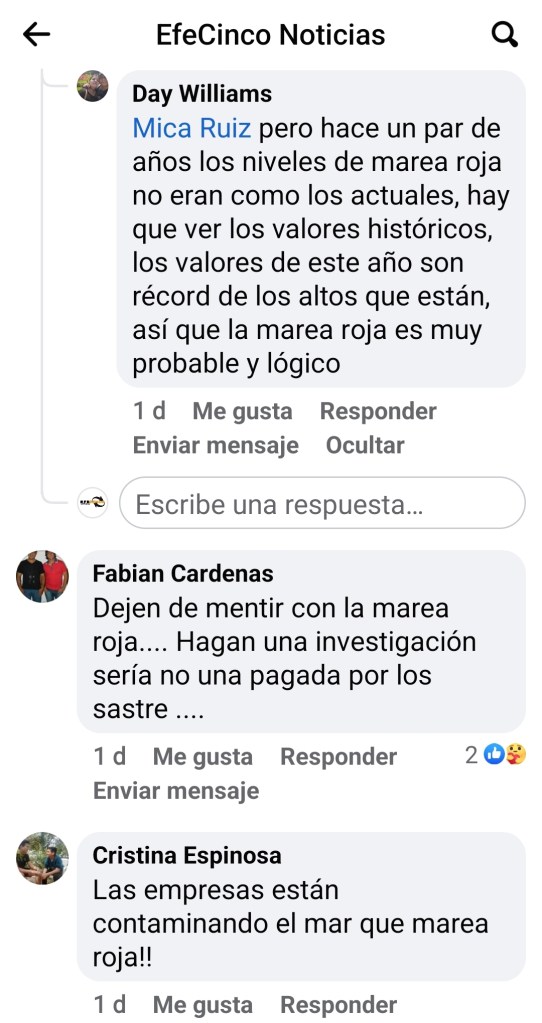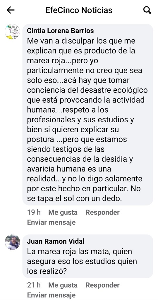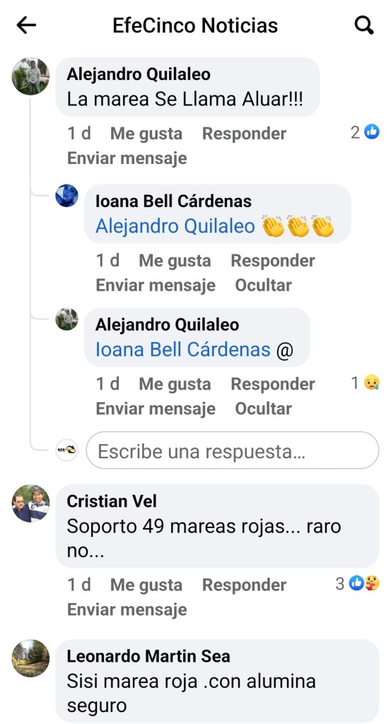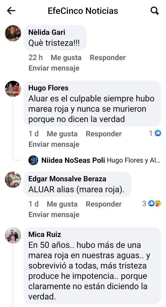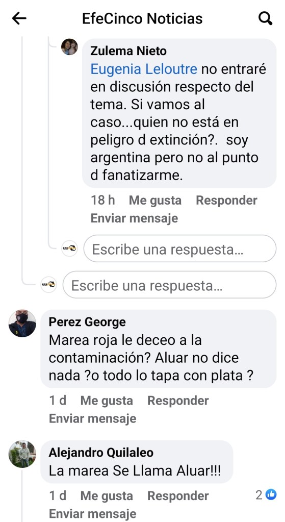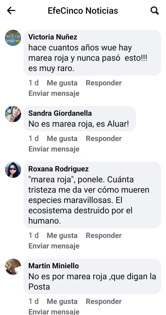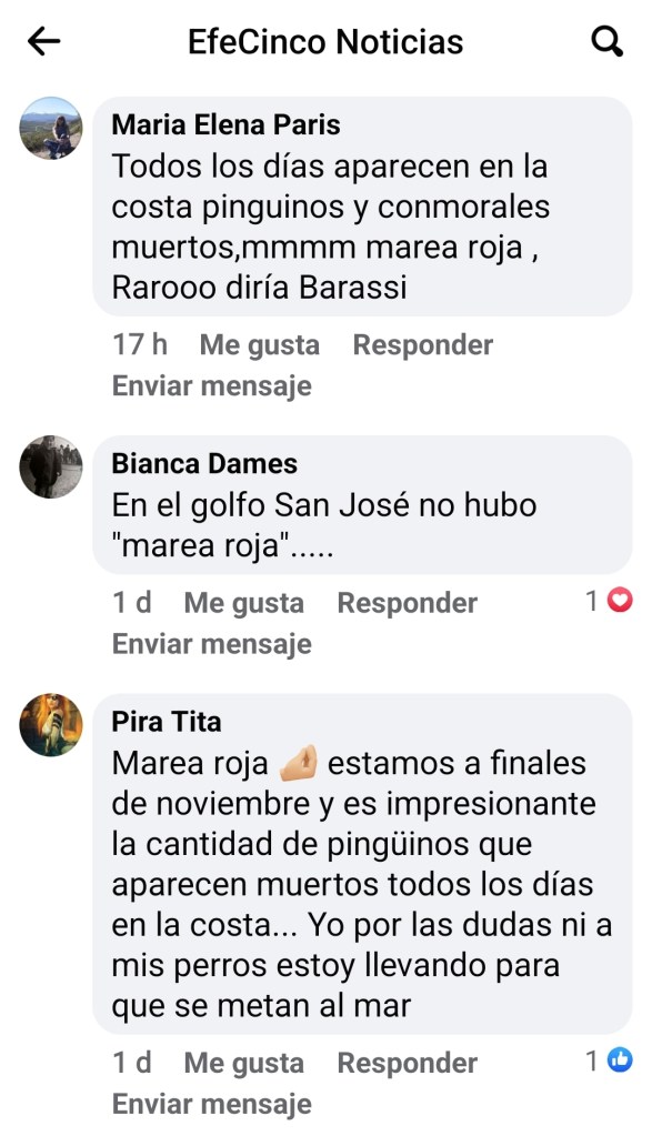 ¿Marea Roja? ¿Que piensa la gente sobre la mortandad de ballenas en Chubut? Tras la publicación de un informe que daba cuenta sobre una de las 30 ballenas muertas que fuera censada hace 50 años, los lectores y las lectoras dejan en claro, con sus comentarios, que tienen muchas dudas sobre las causas y que oficialmente no se dieron a conocer informes que puedan responder a esas dudas. Con el derecho a expresar lo que creen, piensan y sienten, aquí un compendio de los comentarios en redes sociales.