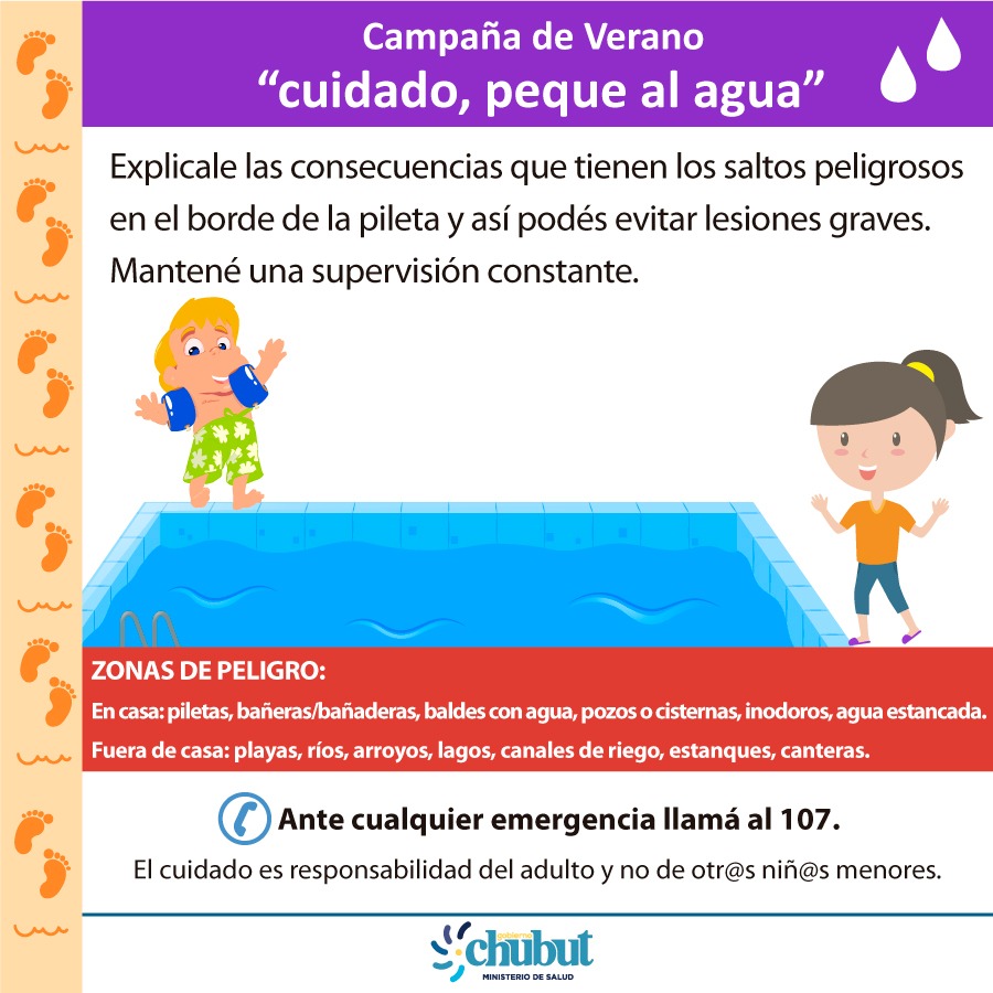 Consultada al respecto, la jefa del Departamento Provincial de Salud del Niño, Paula Martínez, alertó que “bastan diez centímetros de cualquier colección de agua y menos de un minuto para que corra riesgo todo niño o niña, por lo cual es fundamental que haya siempre un adulto responsable supervisando los juegos de los chicos”.