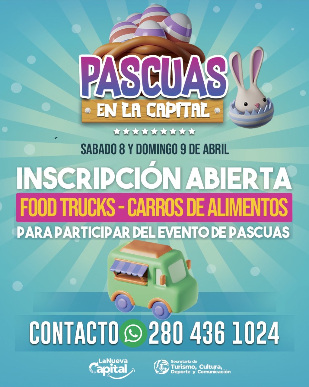 En esta línea, el secretario de Cultura, Gustavo Sosa, invitó a los vecinos “a disfrutar del evento de Pascuas en la Capital”, e informó que “en esta oportunidad, convocamos a carros de comida y food trucks a participar de la actividad. Para ello, deben comunicarse al 2804 361024 para realizar la inscripción correspondiente”.