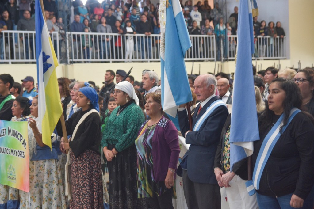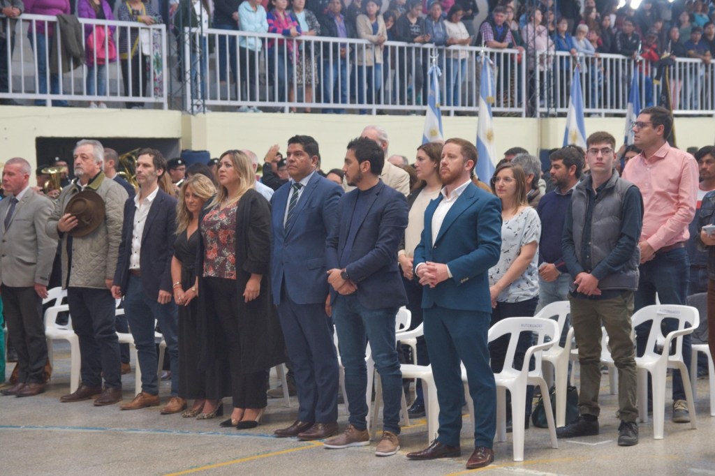 A las 11 horas, comenzó la ceremonia encabezada por el intendente Dante Bowen quien estuvo acompañado por vecinos y vecinas del Corazón del Valle, funcionarios nacionales, provinciales, municipales, intendentes, ediles, representantes de instituciones escolares, estudiantes, integrantes de las fuerzas armadas y de seguridad, Bomberos Voluntarios, Cooperativa Eléctrica, Club Social y Deportivo Dolavon.
