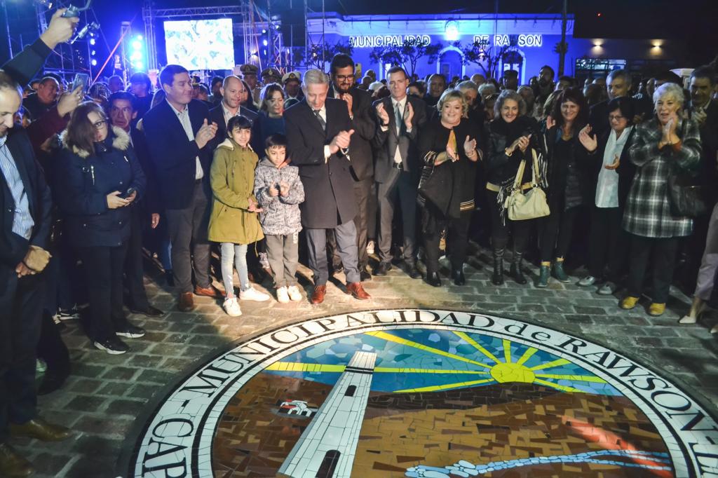 El intendente de Rawson, Damián Biss, encabezó este jueves por la tarde el acto de inauguración de las obras de remodelación de la Plaza Guillermo Rawson, que incluyó la rehabilitación de distintos espacios como la emblemática fuente central, la nueva oficina de informes turísticos, y obras artísticas.