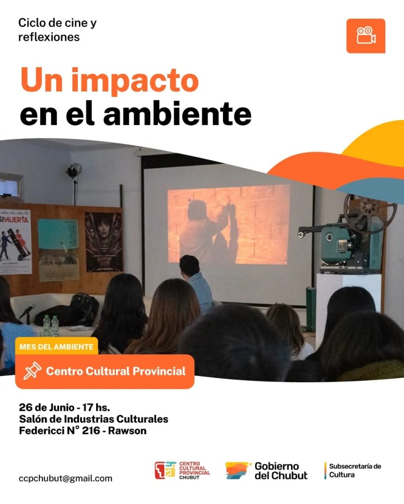 Enmarcada en las actividades que el Centro Cultural Provincial (CCP) de Rawson viene realizando por el “Mes del Ambiente”, la Subsecretaría de Cultura, dependiente del Gobierno del Chubut que conduce Ignacio “Nacho” Torres, invita al público en general a participar de la segunda edición del “Ciclo de Cine y Reflexiones”, que se realizará este miércoles 26 de junio desde las 17 horas.