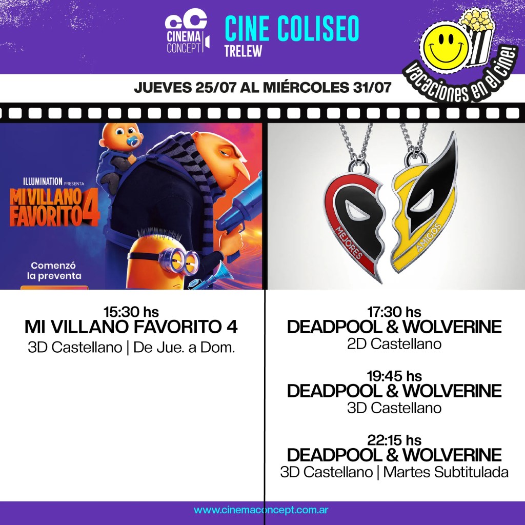 El Cine Coliseo de Trelew anuncia su nueva programación para la semana del 25 al 31 de julio, ofreciendo una variedad de películas y horarios para todos los gustos. Las entradas ya están disponibles en la boletería del cine, en la web oficial y en la APP Cinema Concept. A continuación, se detallan las películas y horarios disponibles para esta semana.