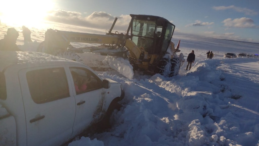 Una familia quedó atrapada por la nieve en un camino vecinal y fue rescatada gracias a la rápida intervención de la policía, bomberos y el municipio local.