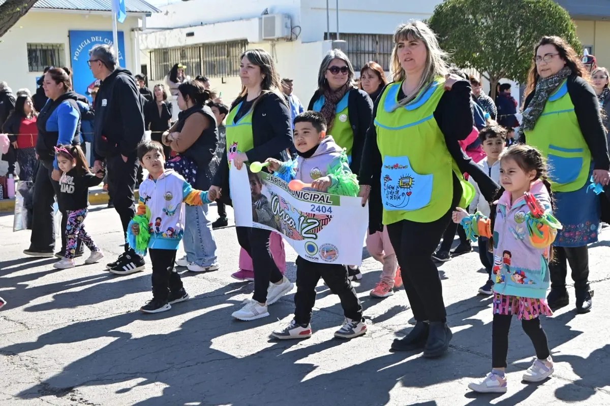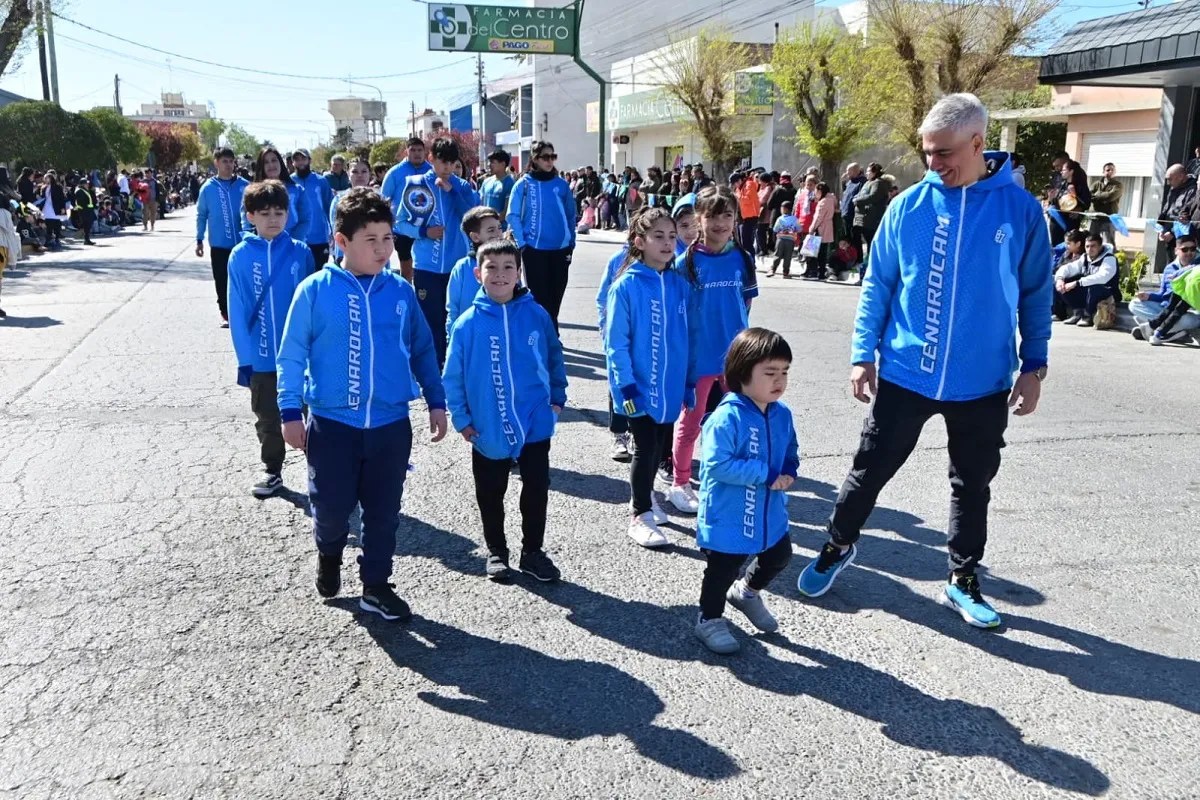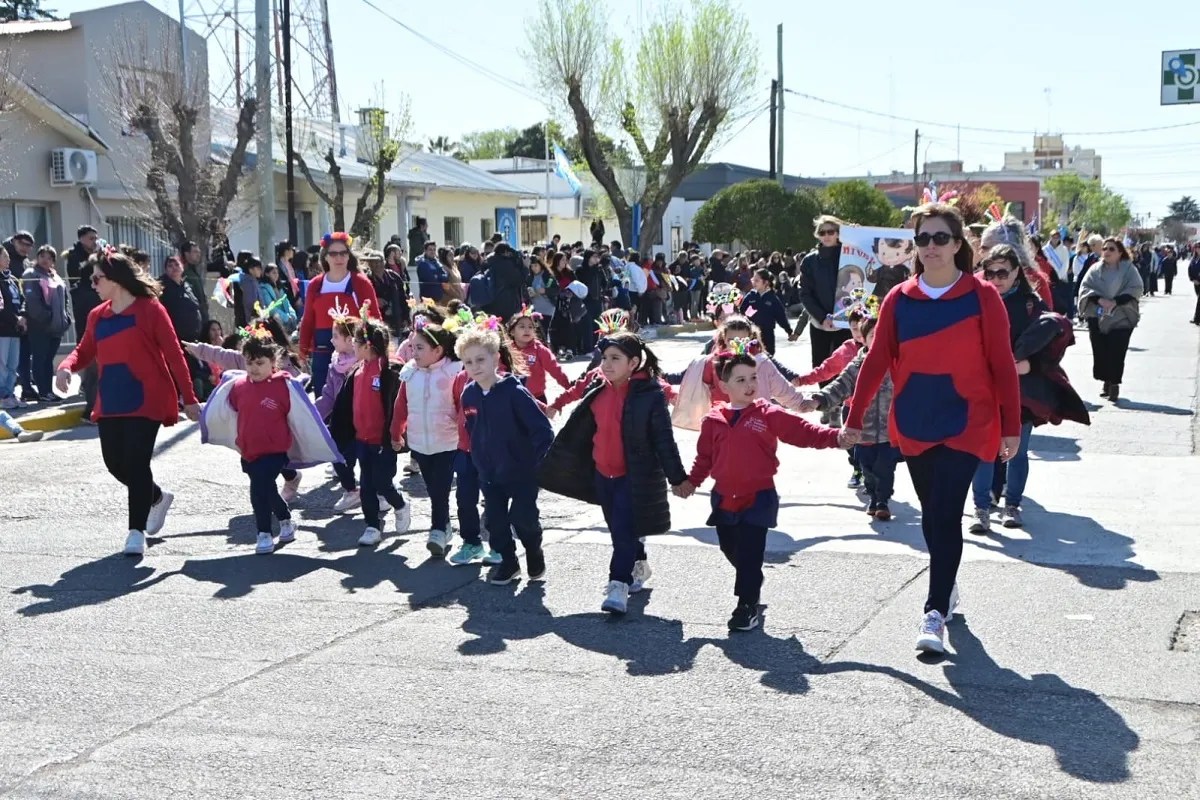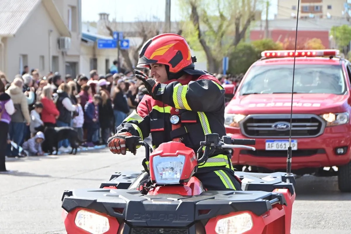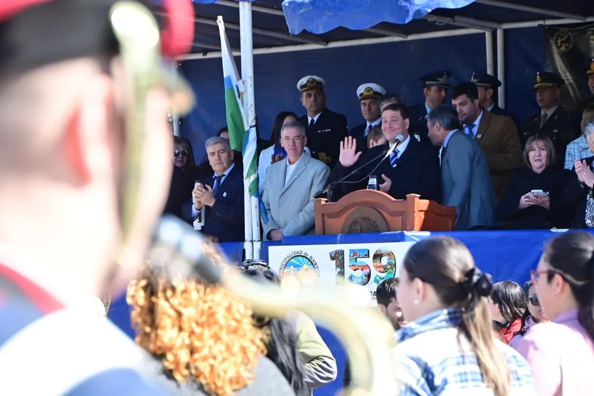 En su discurso, el intendente destacó la emoción de celebrar otro aniversario junto a la comunidad, agradeciendo la masiva participación a pesar de las condiciones climáticas adversas. «Quiero valorar profundamente el acompañamiento de los vecinos, que siempre demuestran su interés y cariño por nuestra ciudad», señaló Biss, al resaltar el compromiso de las instituciones locales en el desfile.