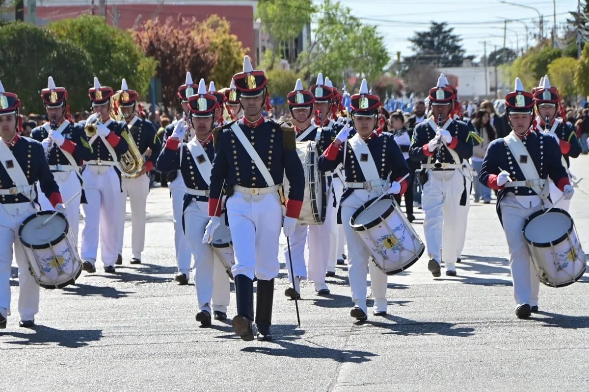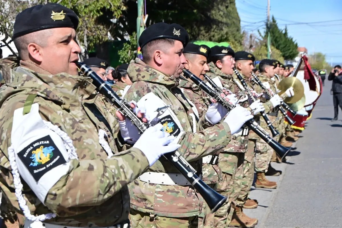A las 19:30 horas, la celebración continuó con un Encuentro Provincial de Bandas Militares en la intersección de la avenida 9 de Julio y la calle Mariano Moreno. Representantes de Rawson, Comodoro Rivadavia y Esquel se unieron para ofrecer un espectáculo musical que cerró la jornada con broche de oro.