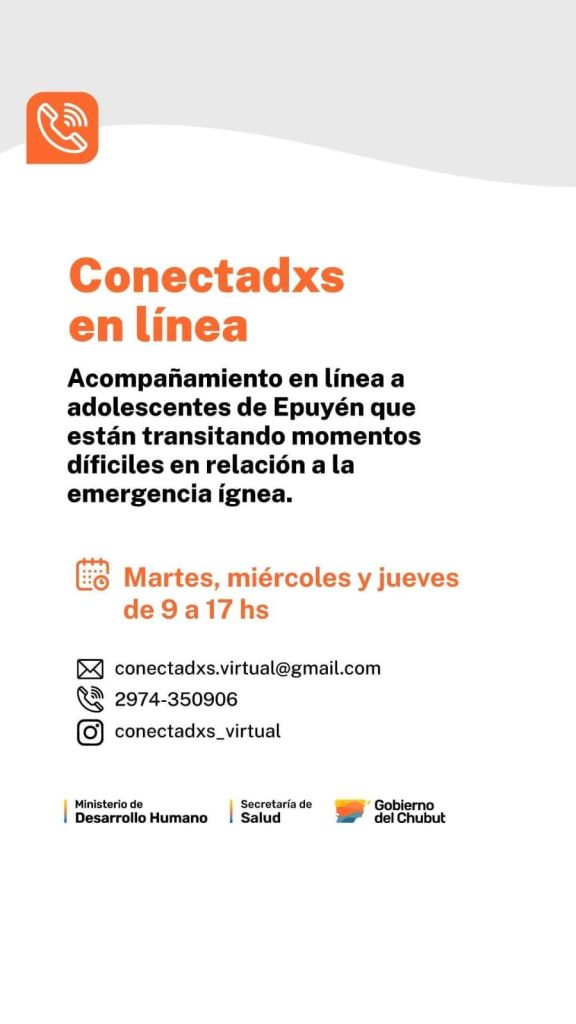 El dispositivo, coordinado por un equipo interdisciplinario, funciona de forma virtual los martes, miércoles y jueves de 9 a 17 horas. Los jóvenes pueden comunicarse al WhatsApp 2974350906 o la cuenta de Instagram @conectadxs_virtual para recibir asistencia y acompañamiento.