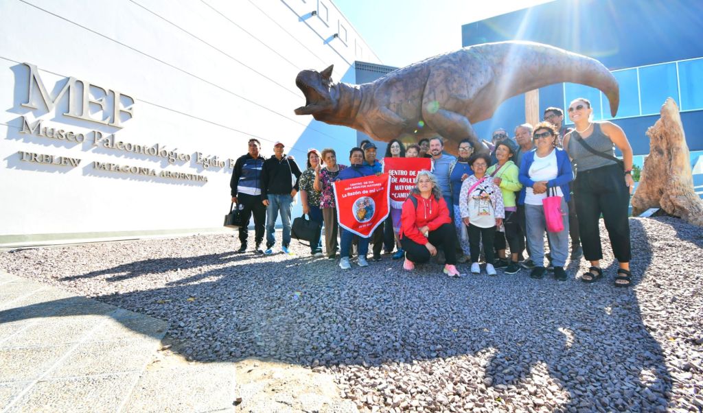 El intendente de Trelew, Gerardo Merino, se acercó a saludar a los adultos mayores que concurren a los centros de día “La Razón de mi Vida”, “Remembranzas” y “Caminito”, que participaron de la visita al Museo Egidio Feruglio (MEF). En la oportunidad, remarcó la importancia que «los adultos mayores y todos los que vivimos en la ciudad tengamos la posibilidad de conocerlo, difundirlo, porque es fundamental que persigamos esa pertenencia y podamos comprender que disponemos de un atractivo provincial, nacional e internacional”.