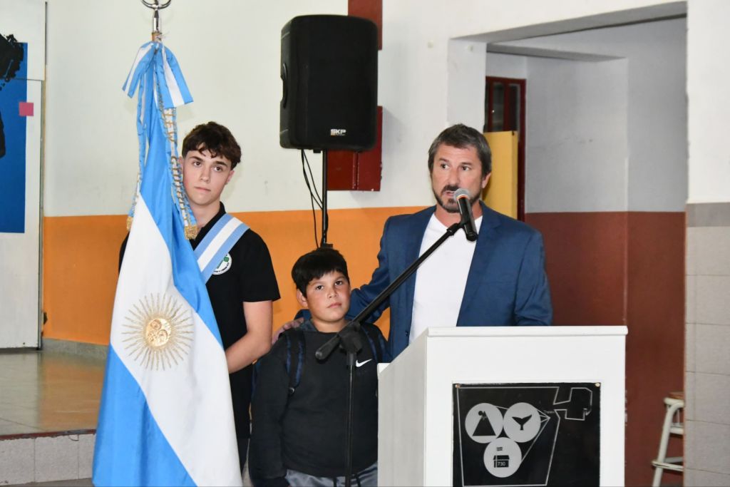 Merino entregó la bandera de la ciudad a la Escuela 730, quien se convirtió en primera de nivel secundario en recibir ese símbolo «que nos da pertenencia», afirmó el intendente.