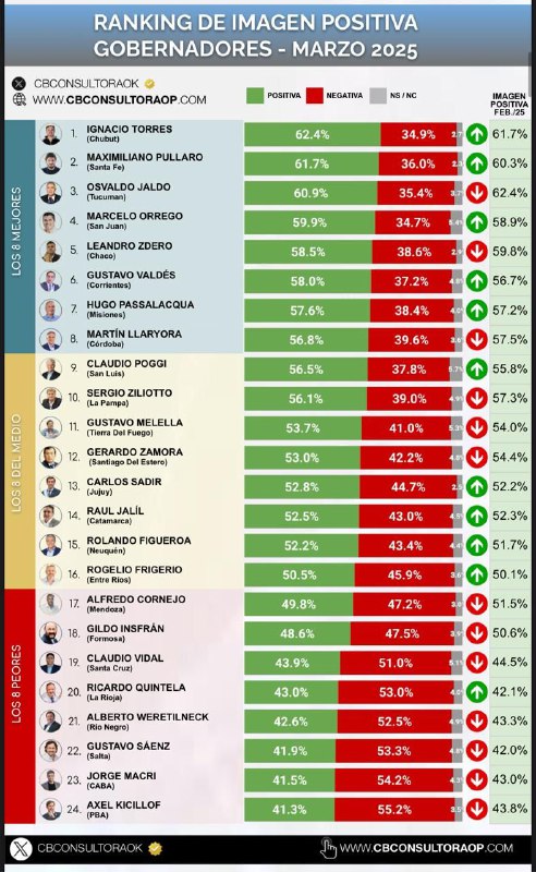 El gobernador de Chubut lidera la lista de gobernadores con mejor imagen del país, según la medición para el mes de marzo de la consultora de opinión pública CB, que ubicó a Ignacio «Nacho» Torres como el mandatario con la valoración más alta en las 24 jurisdicciones del país.