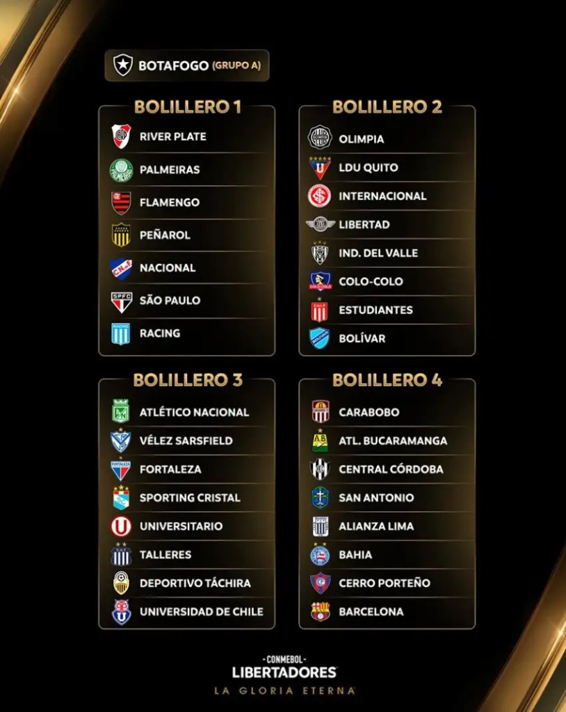 Estos cuatro clubes se ubicarán en el Bombo 4, lo que completa la distribución de los grupos para el sorteo.