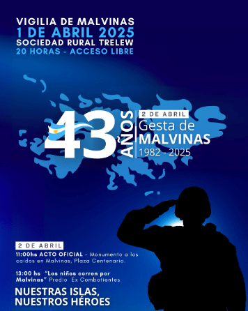 La Municipalidad de Trelew reafirma su compromiso con la memoria y el reconocimiento a los héroes de Malvinas, organizando diversas actividades para conmemorar los 43 años del conflicto bélico en las Islas del Atlántico Sur. El intendente Gerardo Merino destacó la importancia de acompañar estas actividades, asegurando que el municipio estará a disposición para cubrir todas las necesidades y que el evento se viva en familia.