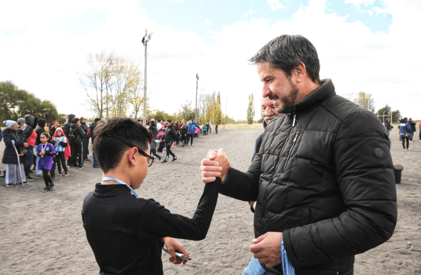El intendente Gerardo Merino estuvo presente y acompañó a las familias y organizadores en esta significativa actividad que apunta a fortalecer la memoria y el reconocimiento a los héroes de Malvinas desde las nuevas generaciones.