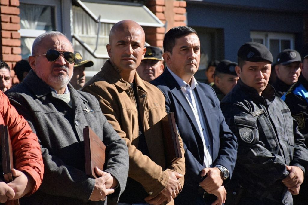 El acto contó con la presencia del ministro de Seguridad y Justicia, Héctor Iturrioz; el coordinador de Seguridad del Municipio local, Adrián Muñoz; veteranos de Malvinas e integrantes de la plana mayor de la fuerza de seguridad estatal.